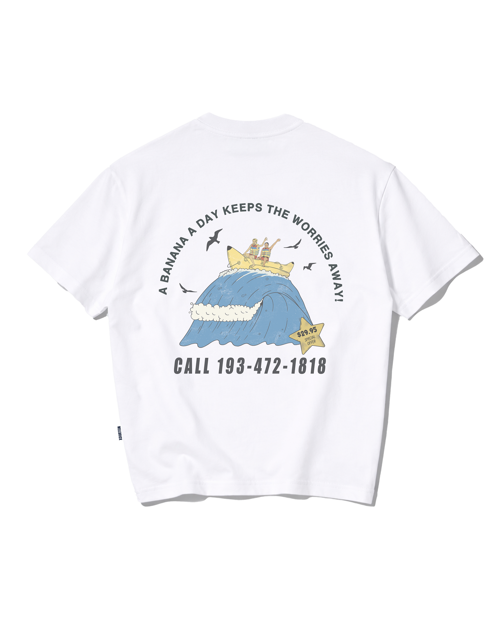 T-shirt di ispirazione vintage in bianco con la nostra stampa slavata di Banana Boat sul retro.