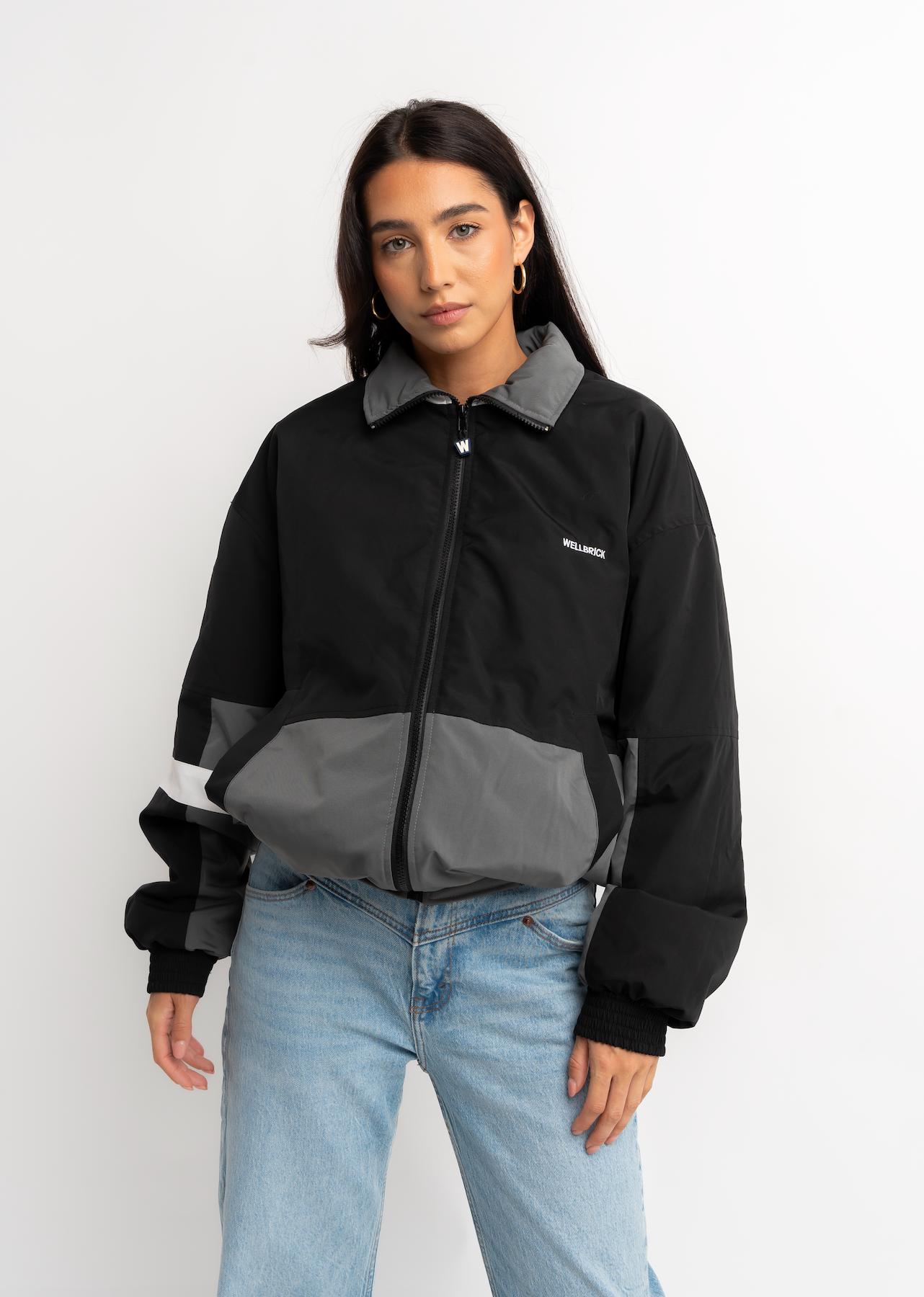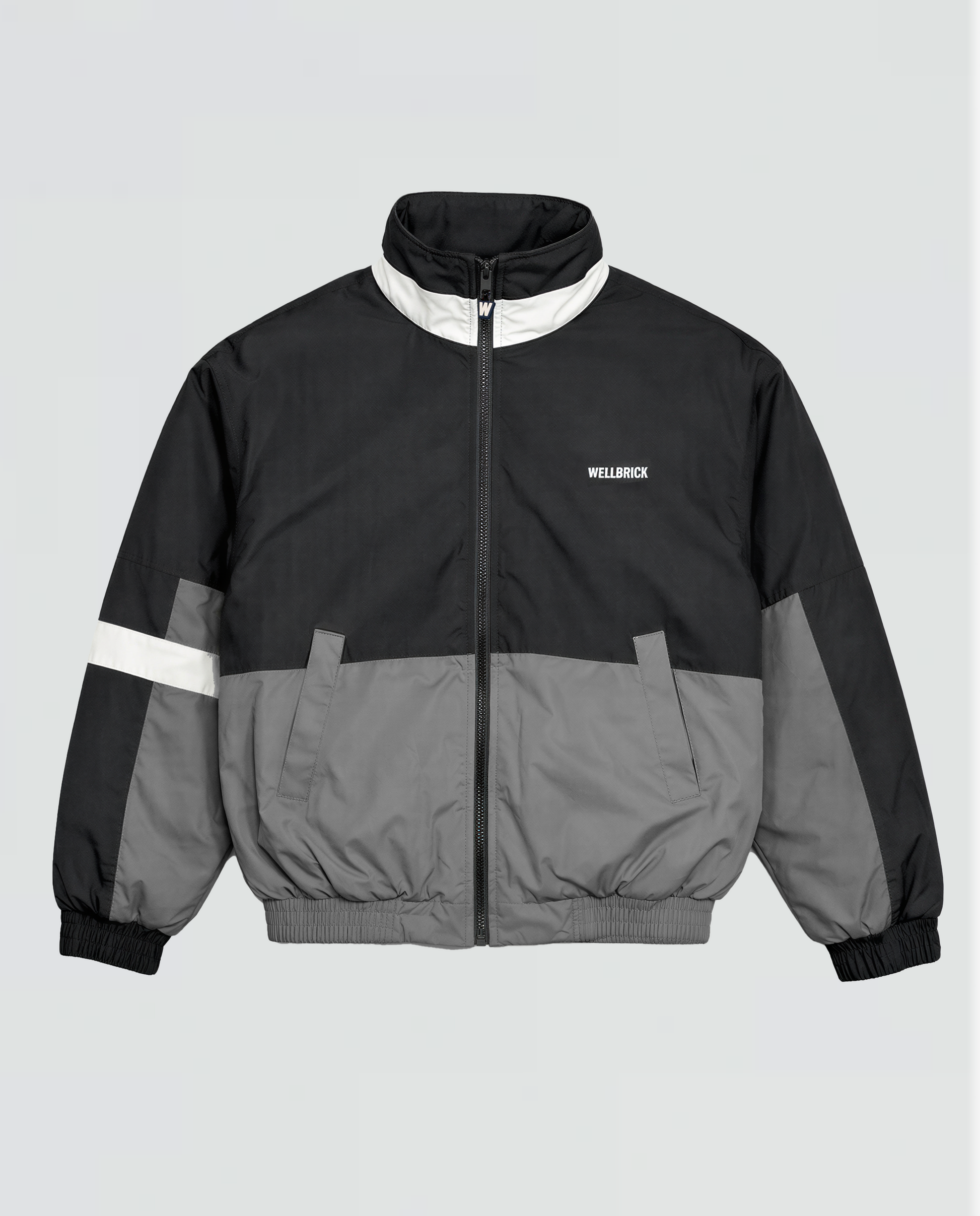 Wellbrick Jacket V2 in Grey and Black with our original logo embroidered on the front.